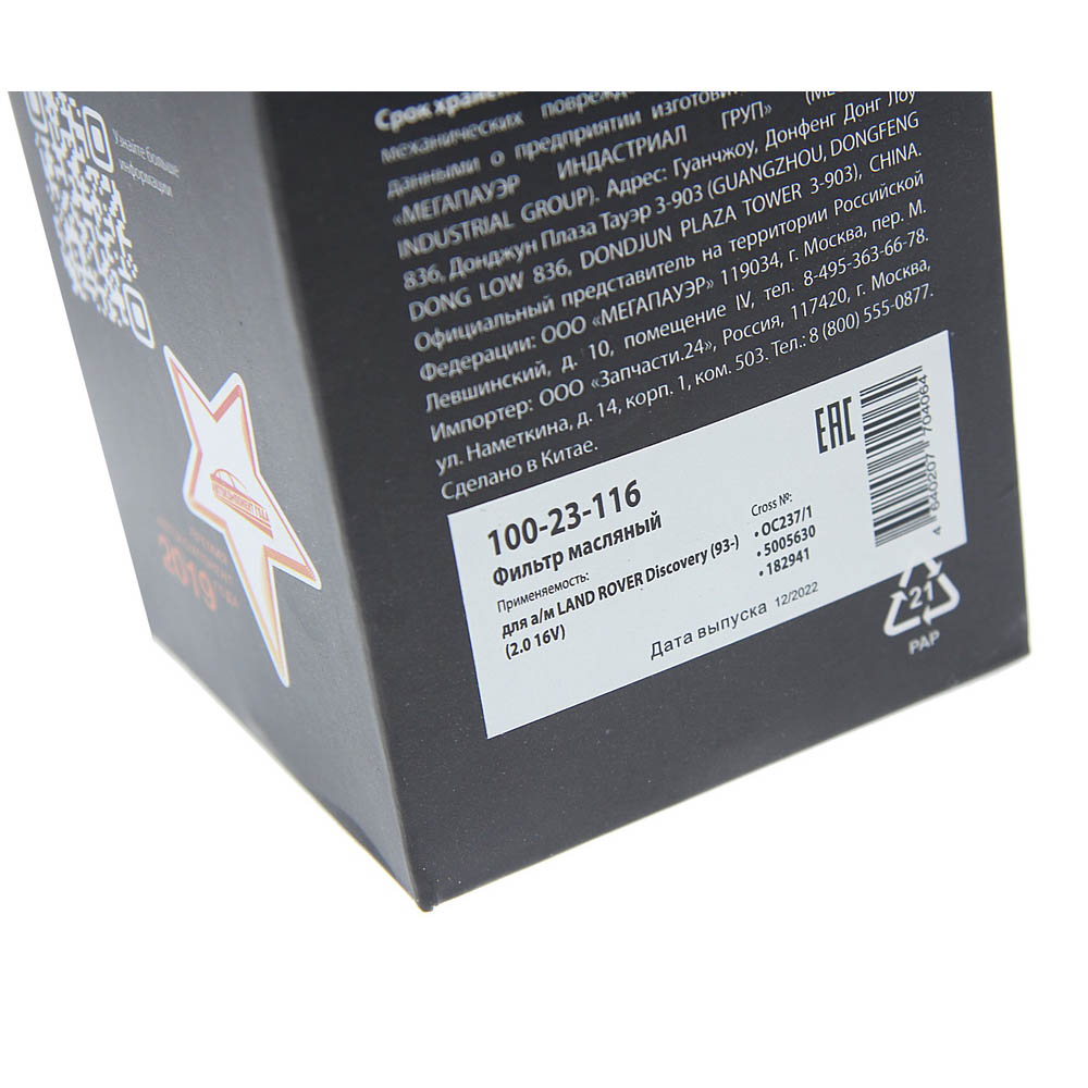 | Наименование | Фильтр масляный LAND ROVER Discovery (93-) (2.0 16V) MEGAPOWER |