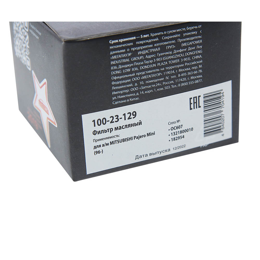 100-23-129 MEGA POWER Фильтр масляный MITSUBISHI Pajero Mini (96-) MEGAPOWER