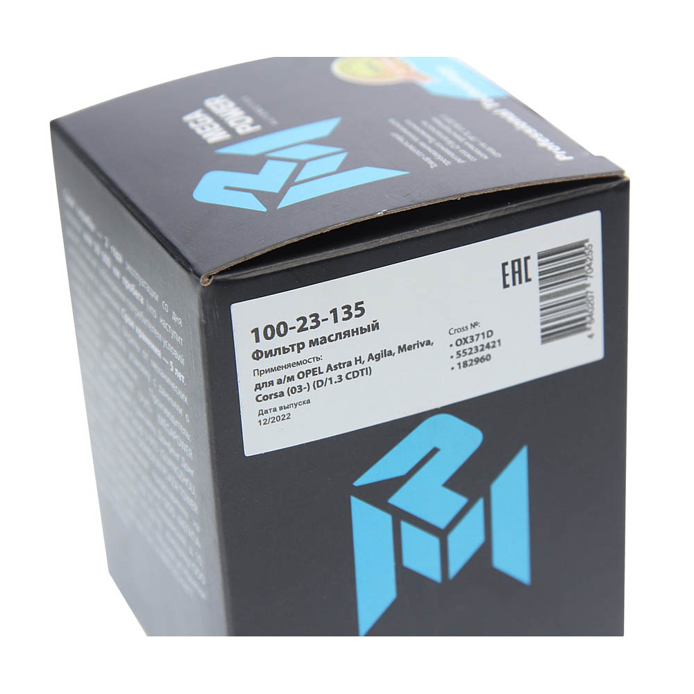100-23-135 MEGA POWER Фильтр масляный OPEL Astra H,Agila,Meriva,Corsa (03-) (D/1.3 CDTI) MEGAPOWER