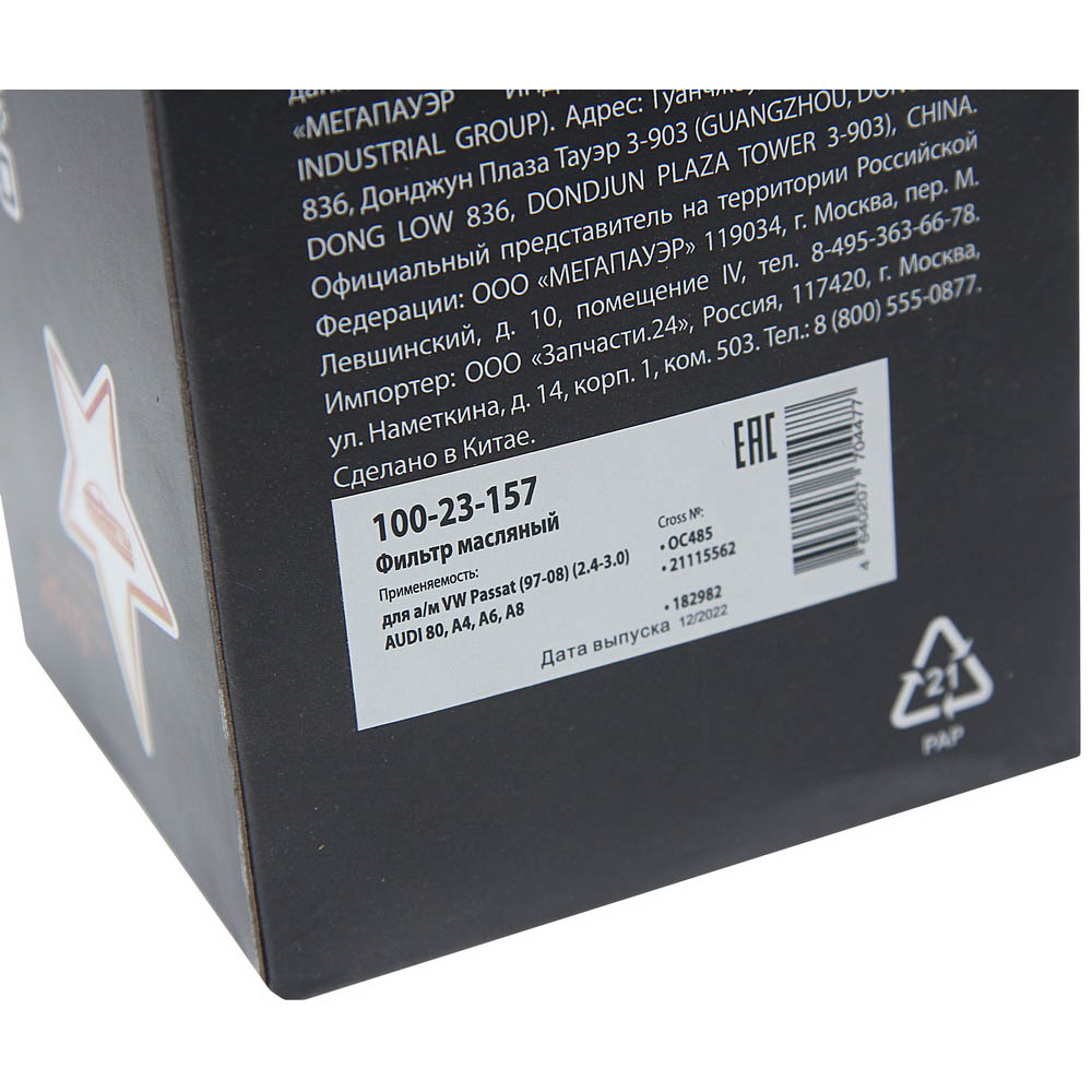 100-23-157 MEGA POWER Фильтр масляный VW Passat (97-08) (2.4-3.0) AUDI 80,A4,A6,A8 MEGAPOWER