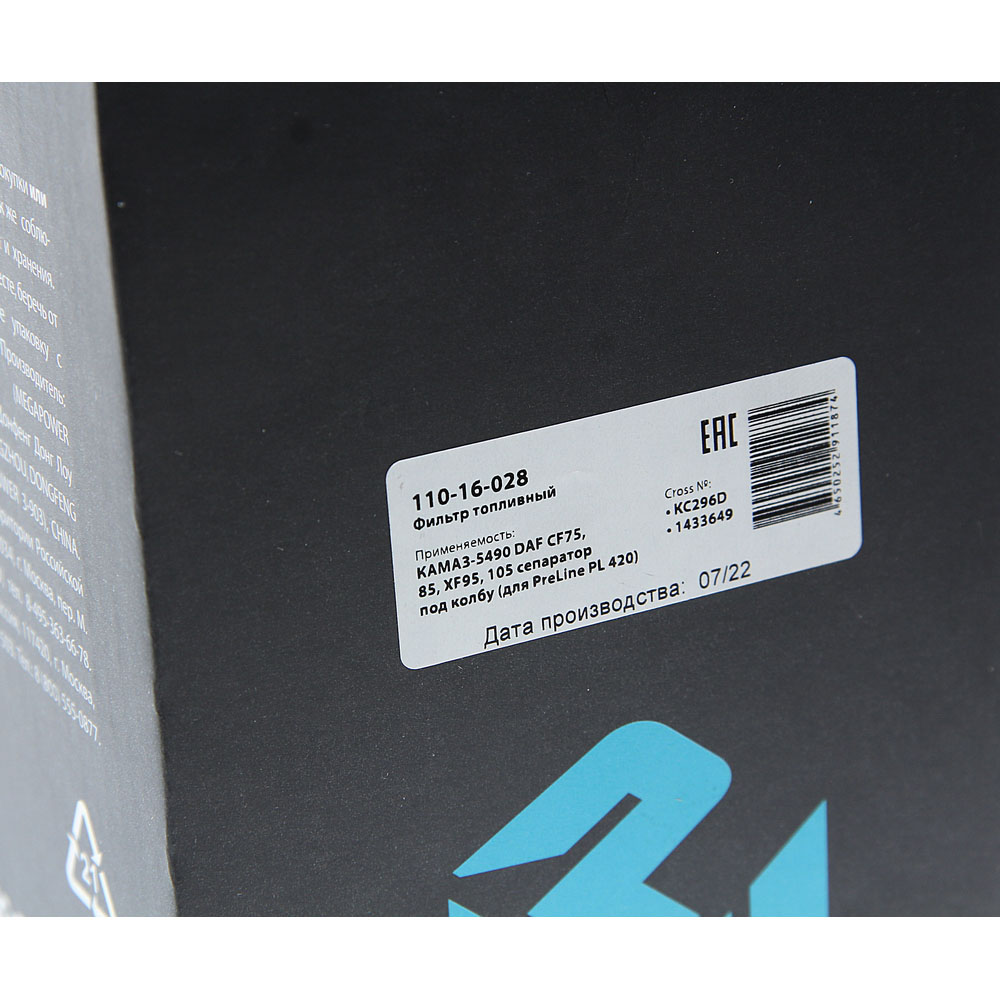 | Наименование | Фильтр топливный КАМАЗ-5490 DAF CF75,85,XF95,105 сепаратор под колбу (для PreLin |