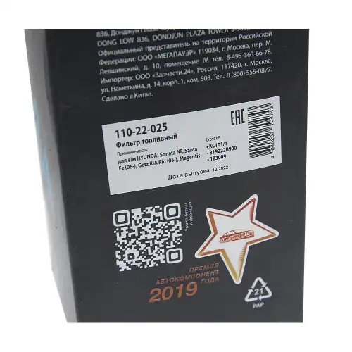 110-22-025 MEGA POWER Фильтр топливный HYUNDAI Sonata NF,Santa Fe (06-),Getz KIA Rio (05-),Magentis ME