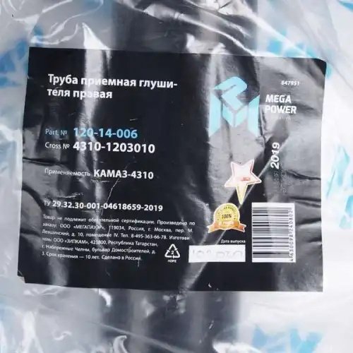 | Наименование | Труба приемная глушителя КАМАЗ-4310 правая MEGAPOWER |