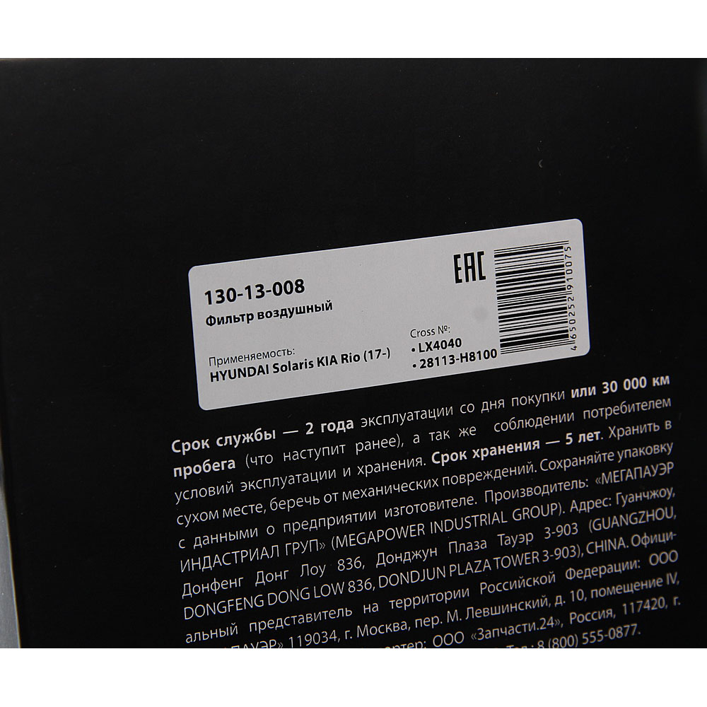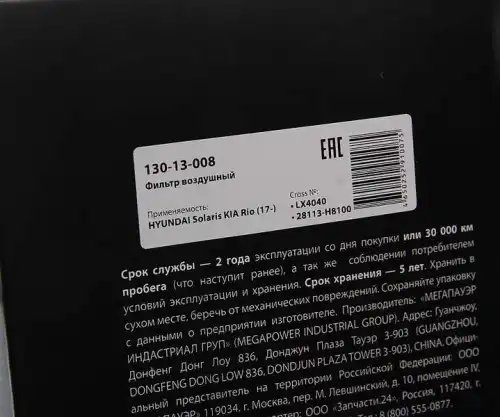 | Наименование | Фильтр воздушный HYUNDAI Solaris KIA Rio (17-) MEGAPOWER |