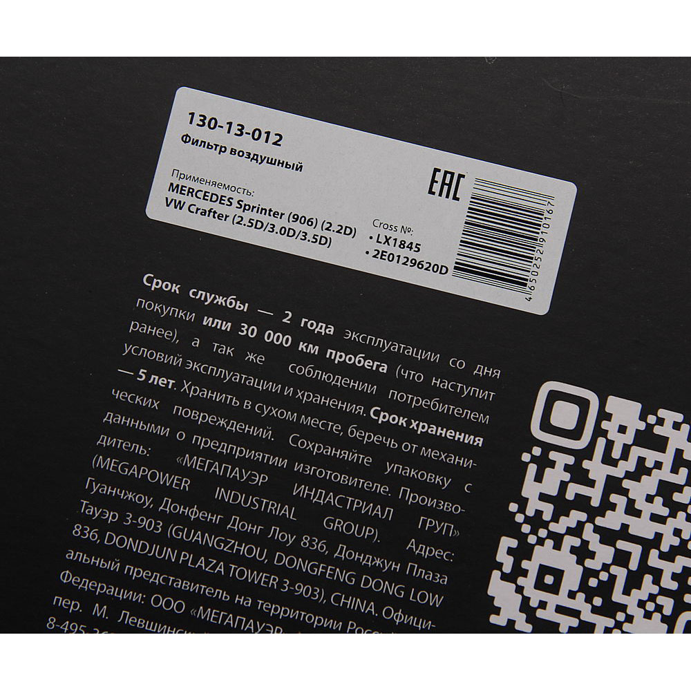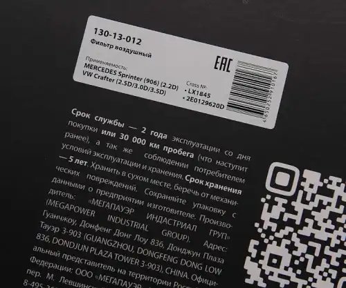 130-13-012 MEGA POWER Фильтр воздушный MERCEDES Sprinter (906) (2.2D) VW Crafter (2.5D/3.0D/3.5D) MEGA