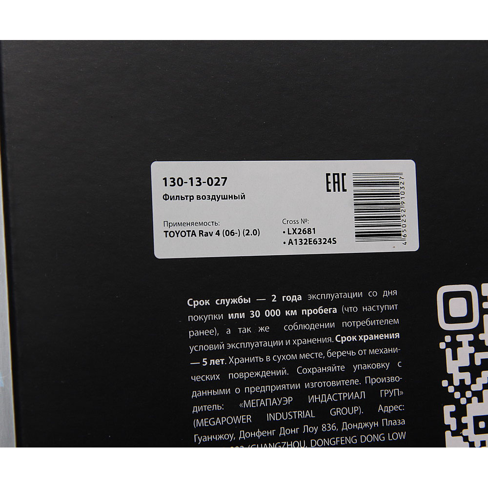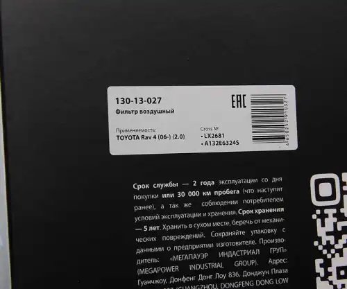 | Наименование | Фильтр воздушный TOYOTA Rav 4 (06-) (2.0) MEGAPOWER |