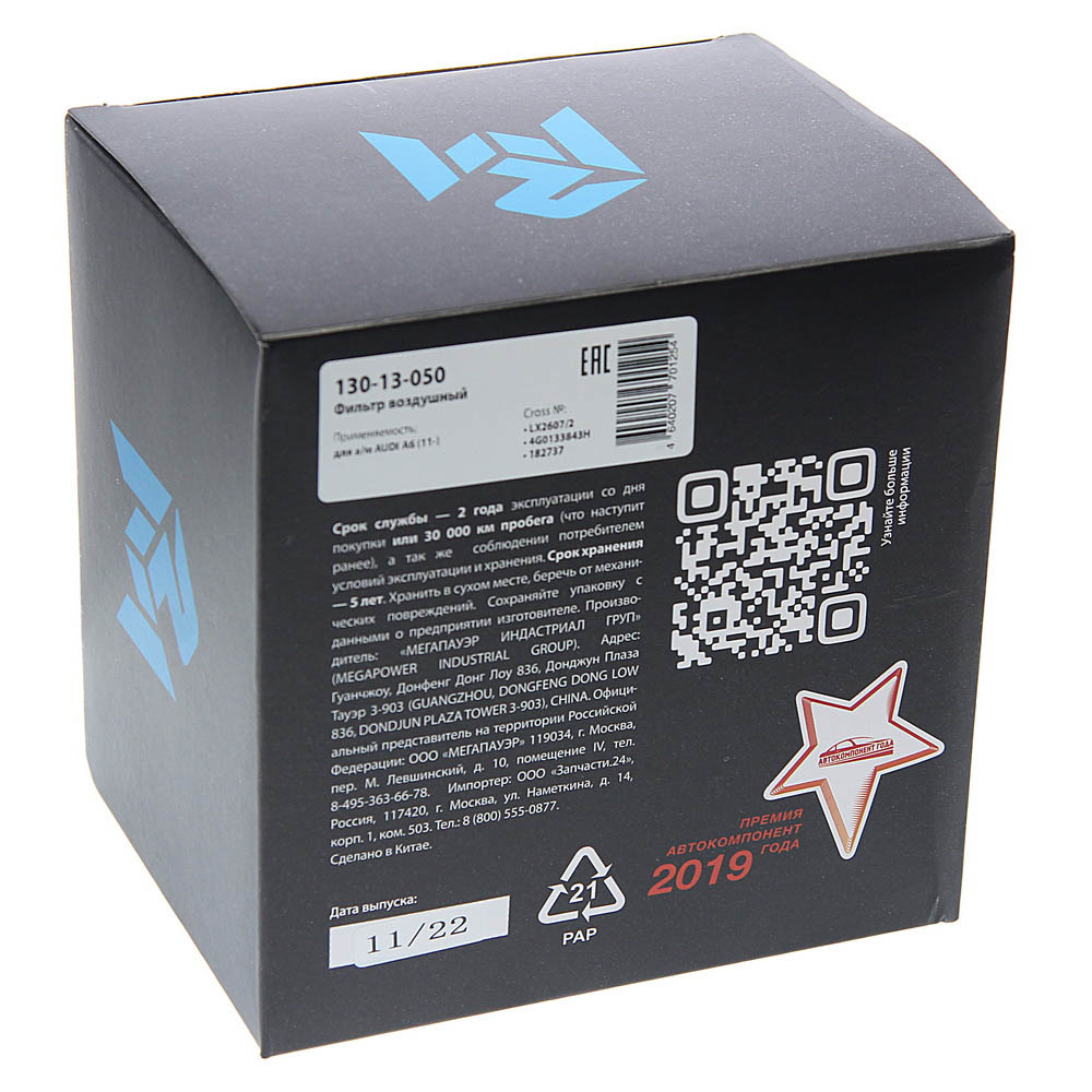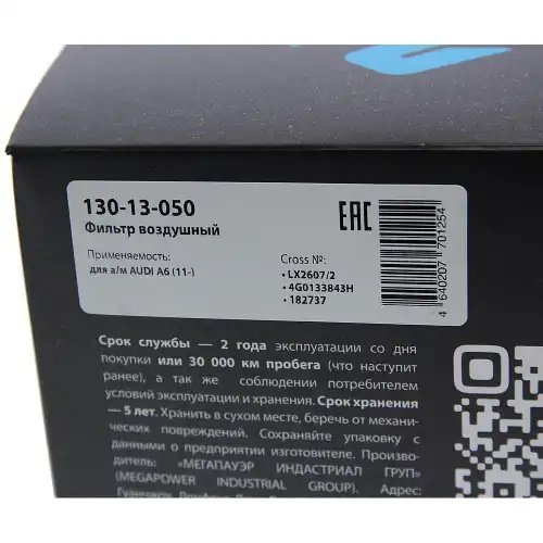 | Наименование | Фильтр воздушный AUDI A6 (11-) MEGAPOWER |