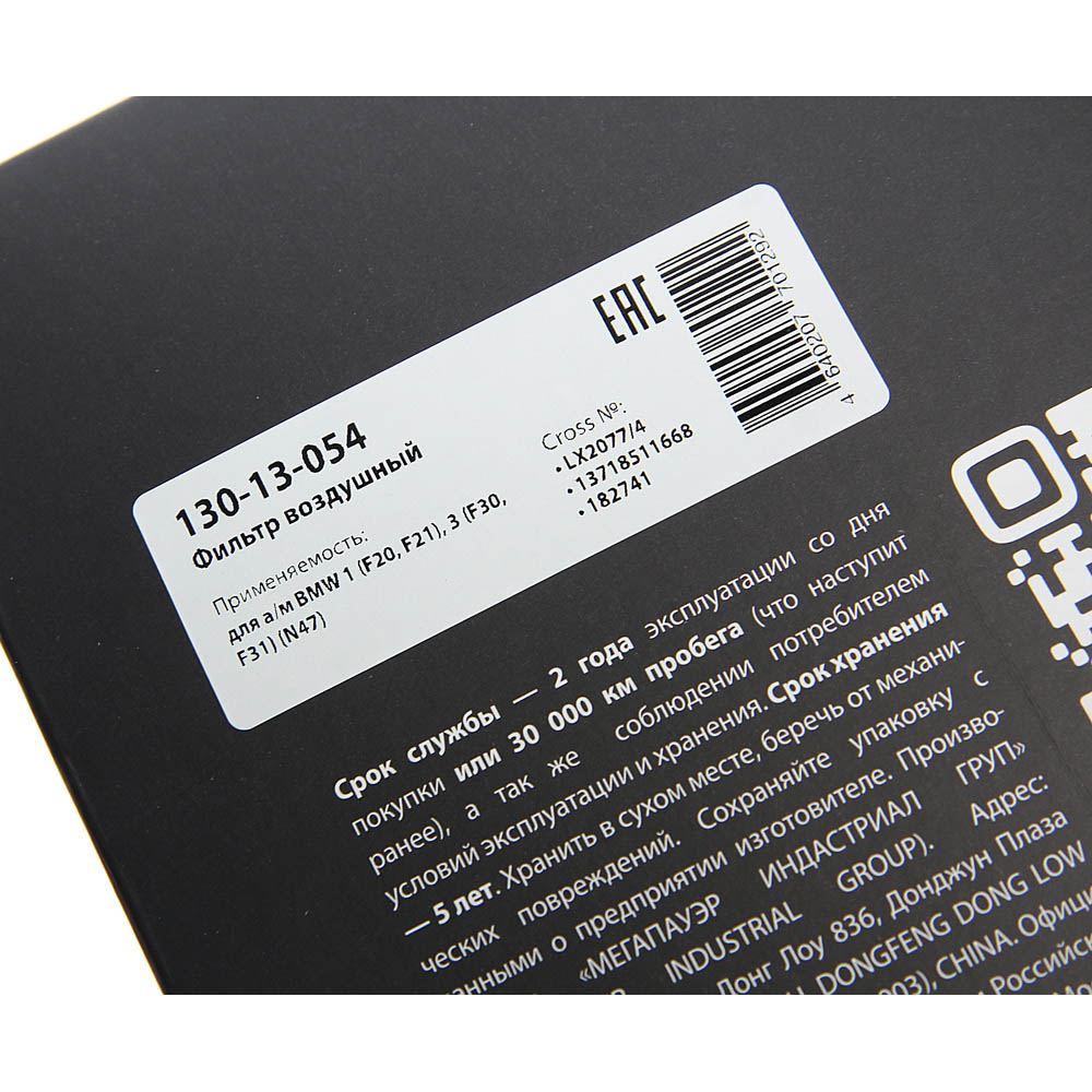 | Наименование | Фильтр воздушный BMW 1 (F20,F21),3 (F30,F31) (N47) MEGAPOWER |