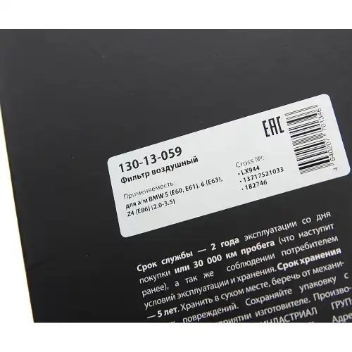 | Наименование | Фильтр воздушный BMW 5 (E60,E61),6 (E63),Z4 (E86) (2.0-3.5) MEGAPOWER |