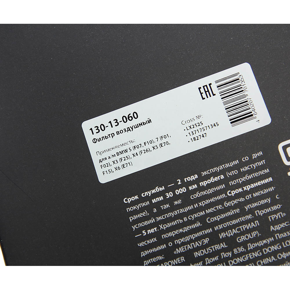 130-13-060 MEGA POWER Фильтр воздушный BMW 5 (F07,F10),7 (F01,F02),X3 (F25),X4 (F26),X5 (E70,F15),X6 (