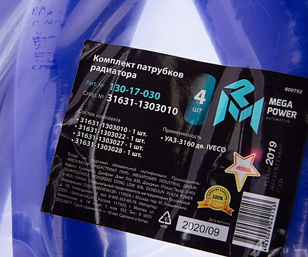 130-17-030 MEGA POWER Патрубок УАЗ-3160 дв.IVECO радиатора комплект 4шт. синий силикон MEGAPOWER