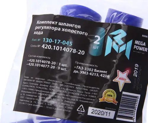 130-17-045 MEGA POWER Шланг ГАЗ-3302 Бизнес дв.УМЗ 4213,4216 РХХ комплект 2шт. синий силикон MEGAPOWER