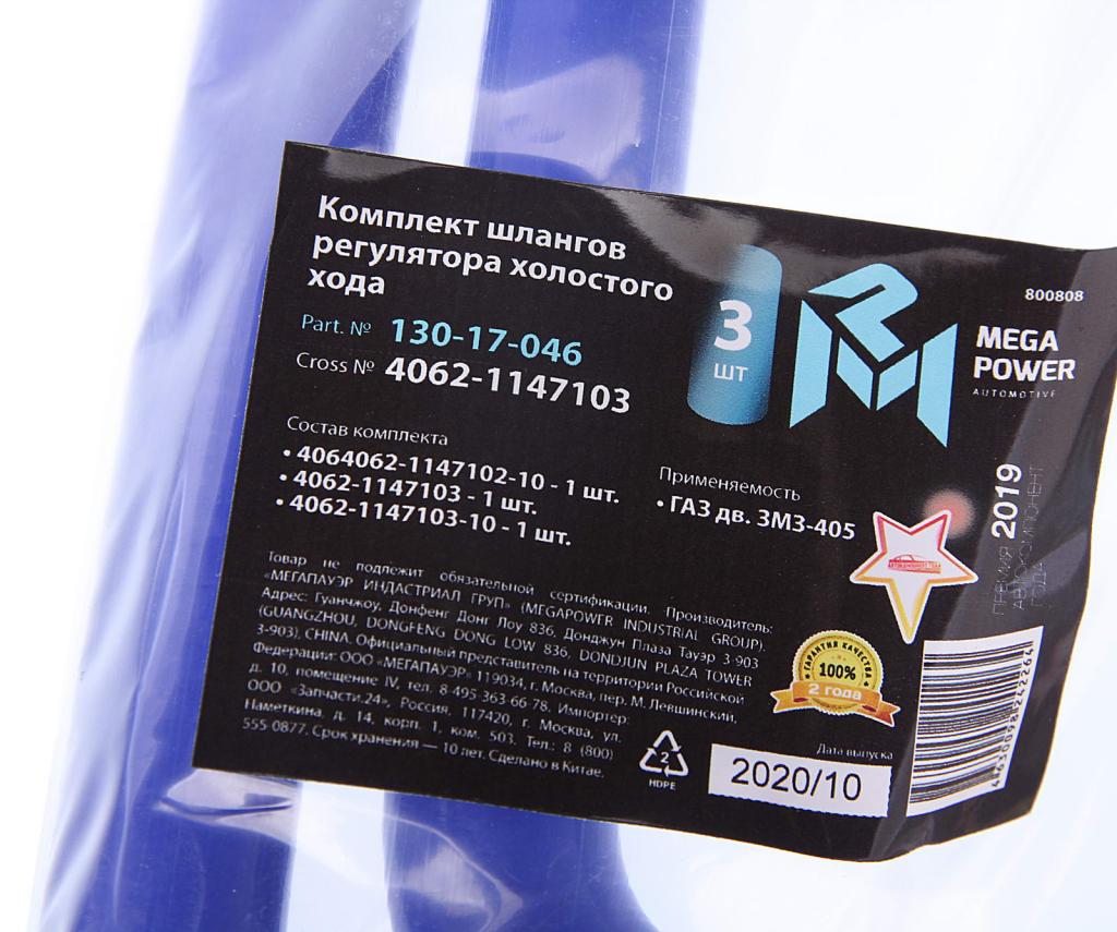 130-17-046 MEGA POWER Шланг ГАЗ дв.ЗМЗ-405 РХХ комплект 3шт. синий силикон MEGAPOWER