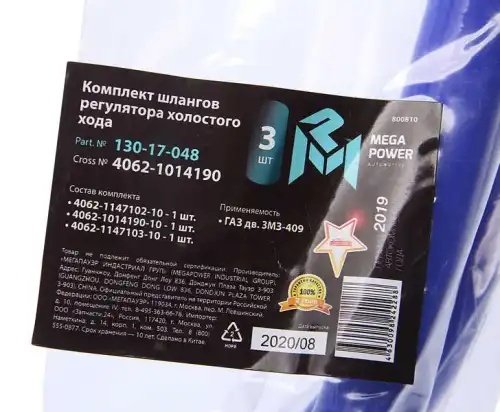 | Наименование | Шланг ГАЗ дв.ЗМЗ-409 РХХ комплект 3шт. синий силикон MEGAPOWER |