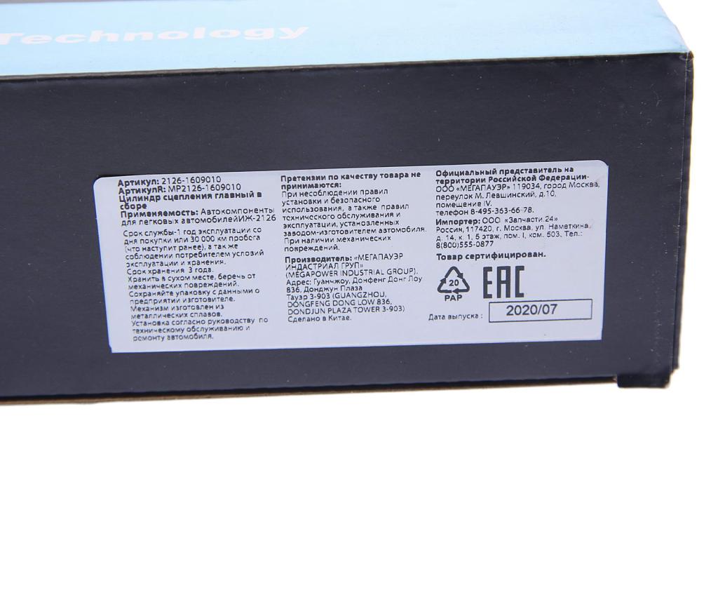 | Наименование | Цилиндр сцепления главный ИЖ-2126 в сборе MEGAPOWER |