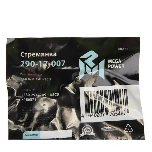 | Наименование | Стремянка ЗИЛ-130 ушка рессоры задней L=108мм;М16х1.5мм усиленная в сборе MEGAPO |
