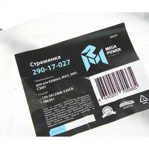 29017027 MEGA POWER Стремянка КАМАЗ,МАЗ,ЗИЛ,СЗАП рессоры задней L=520мм;М22х1.5мм узкой кованая в сб