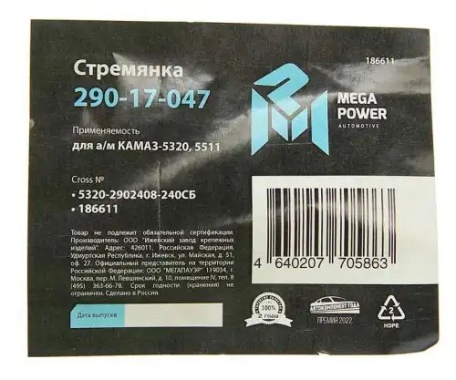 | Наименование | Стремянка КАМАЗ-5320,5511 рессоры передней L=240мм;М20х1.5мм кованая в сборе MEG |