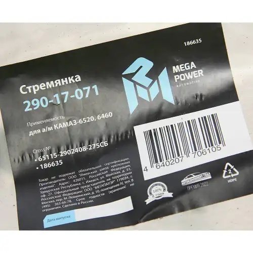 | Наименование | Стремянка КАМАЗ-6520,6460 рессоры передней L=275мм;М24х2мм усиленная в сборе MEG |
