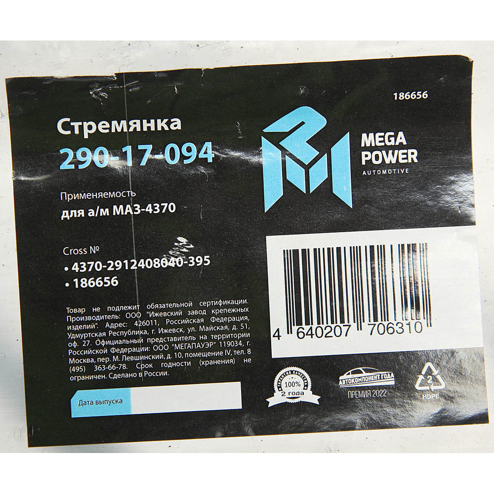 29017094 MEGA POWER Стремянка МАЗ-4370 рессоры задней L=395мм;М16х1.5мм длинная усиленная MEGAPOWER
