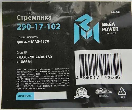 | Наименование | Стремянка МАЗ-4370 рессоры передней L=180мм;М14х1.5мм длинная усиленная MEGAPOWE |