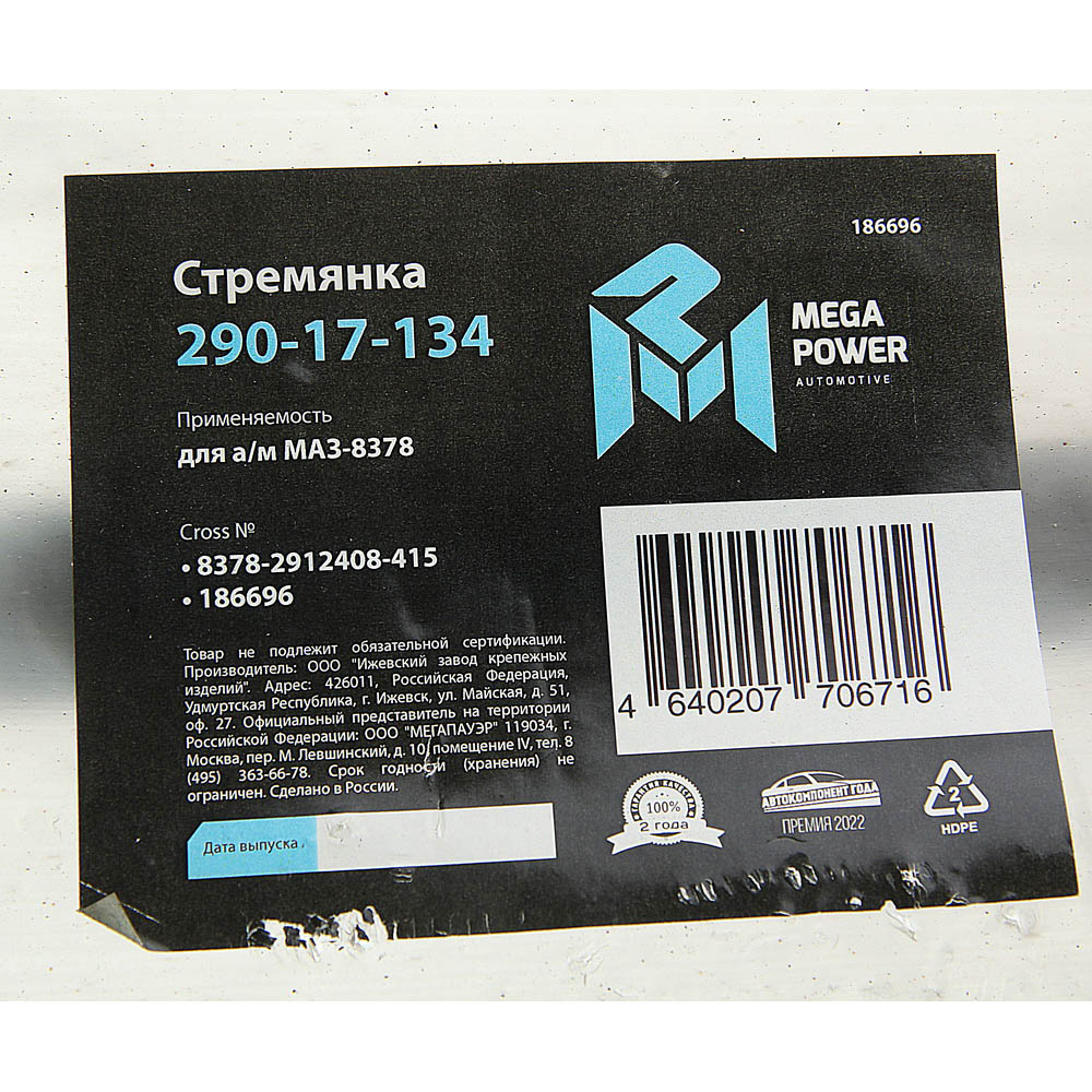 | Наименование | Стремянка МАЗ-8378 полуприцепа L=415мм;М27х2мм кованая MEGAPOWER |