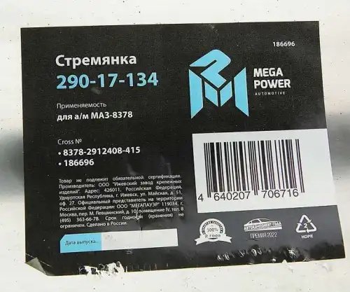 29017134 MEGA POWER Стремянка МАЗ-8378 полуприцепа L=415мм;М27х2мм кованая MEGAPOWER