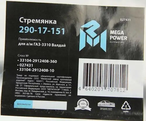 | Наименование | Стремянка ГАЗ-3310 Валдай рессоры задней L=360мм;М20х1.5мм усиленная MEGAPOWER |