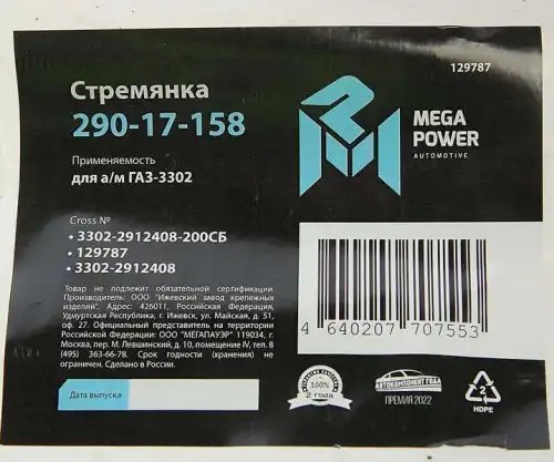 | Наименование | Стремянка ГАЗ-3302 рессоры задней L=200;М16х1.5мм длинная усиленная в сборе MEGA |