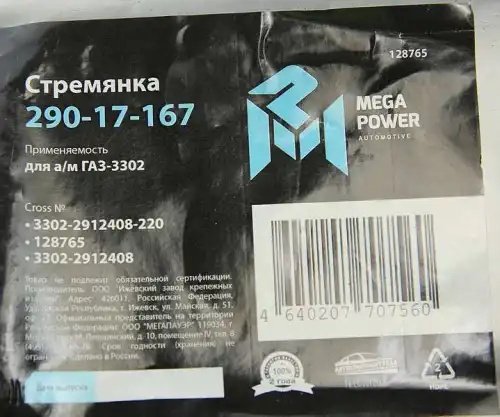 | Наименование | Стремянка ГАЗ-3302 рессоры задней L=220мм;М16х1.5мм длинная усиленная MEGAPOWER |