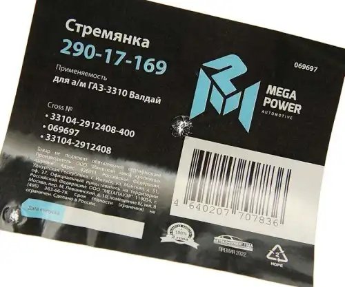 | Наименование | Стремянка ГАЗ-3310 Валдай рессоры задней L=400мм;М20х1.5мм усиленная MEGAPOWER |