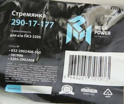 | Наименование | Стремянка ПАЗ-3205 рессоры передней L=160мм;М16х1.5мм усиленная MEGAPOWER |