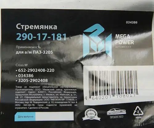 | Наименование | Стремянка ПАЗ-3205 рессоры передней L=220мм;М16х1.5мм усиленная MEGAPOWER |