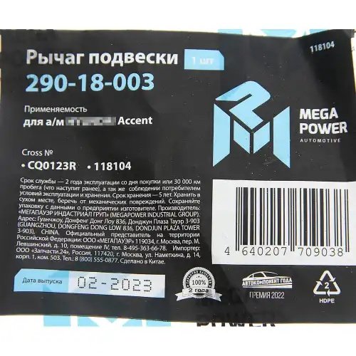 290-18-003 MEGA POWER Рычаг подвески HYUNDAI Accent передней нижний правый MEGAPOWER