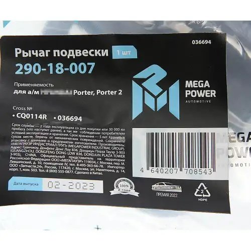 290-18-007 MEGA POWER Рычаг подвески HYUNDAI Porter,Porter 2 передней нижний правый в сборе MEGAPOWER