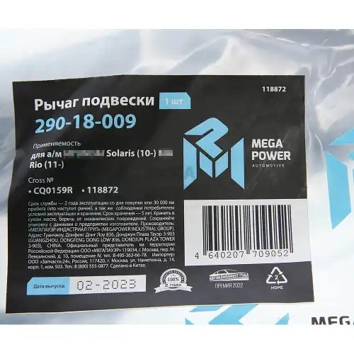290-18-009 MEGA POWER Рычаг подвески HYUNDAI Solaris (10-) KIA Rio (11-) передней нижний правый MEGAPO