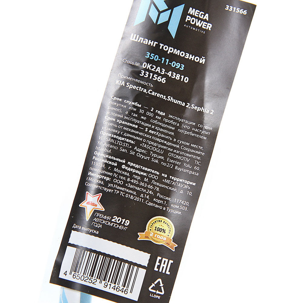 350-11-093 MEGA POWER Шланг тормозной KIA Spectra,Carens,Shuma 2,Sephia 2 задний MEGAPOWER