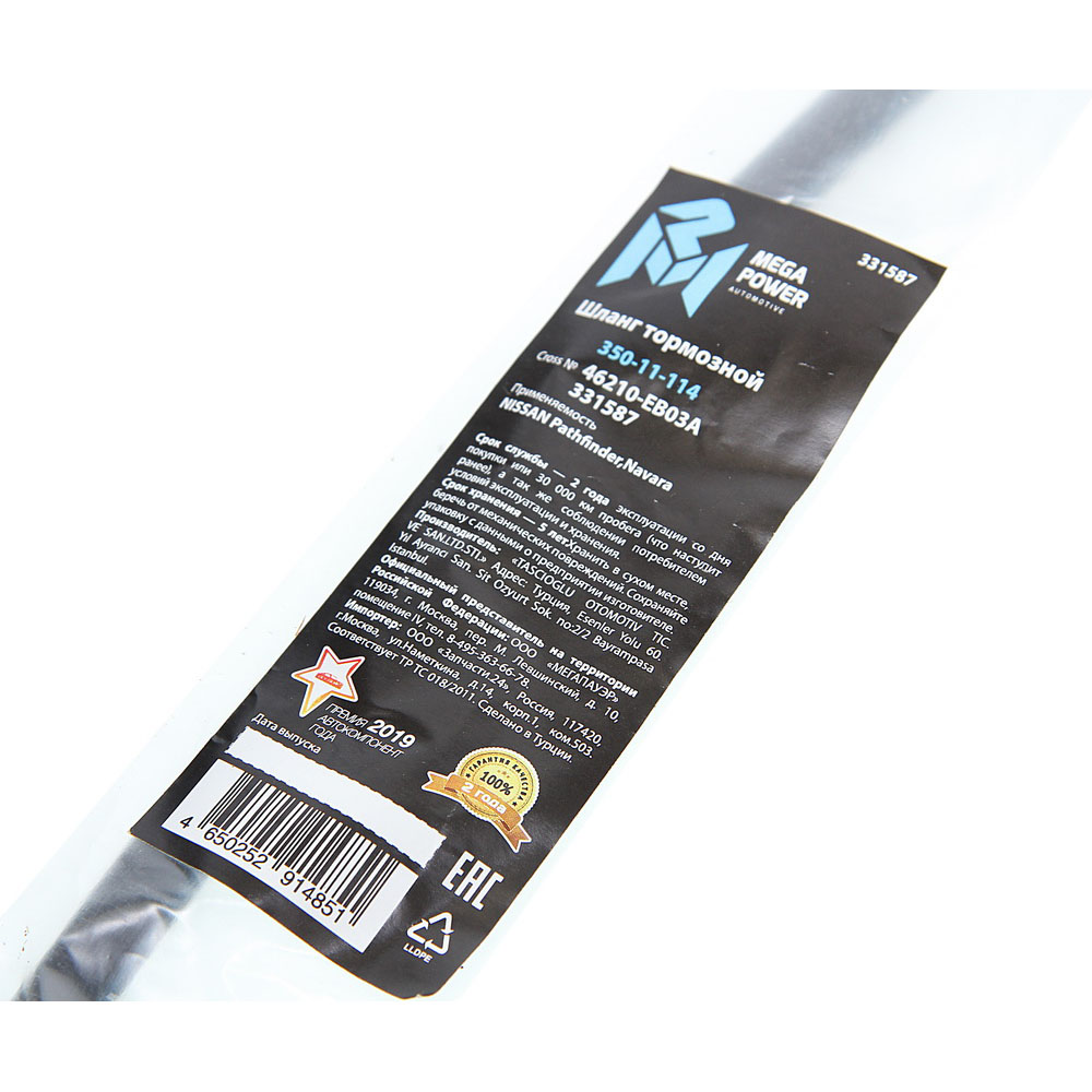 350-11-114 MEGA POWER Шланг тормозной NISSAN Pathfinder,Navara передний правый MEGAPOWER