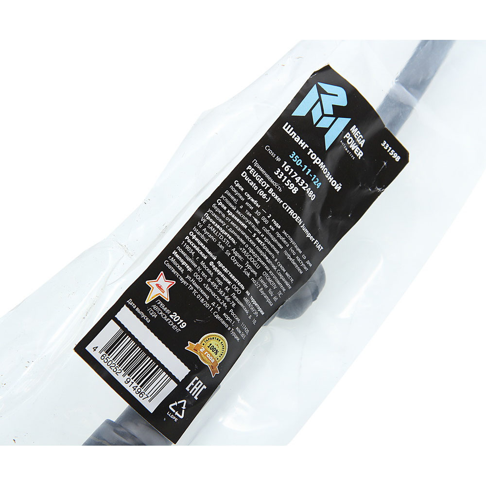 35011124 MEGA POWER Шланг тормозной PEUGEOT Boxer CITROEN Jumper FIAT Ducato (06-) передний MEGAPOWE