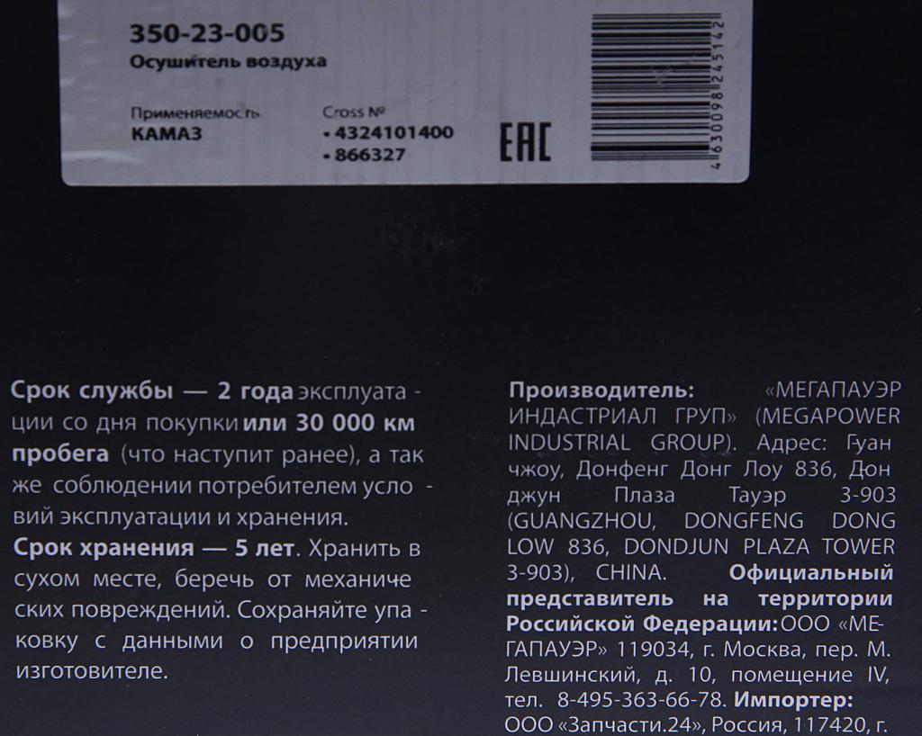 35023005 MEGA POWER Осушитель воздуха КАМАЗ (24V) MEGAPOWER