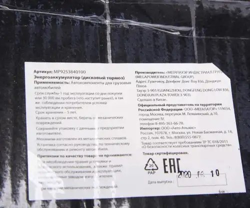 | Наименование | Энергоаккумулятор BPW SAF SCHMITZ тип 16/24 (дисковый тормоз) MEGAPOWER |
