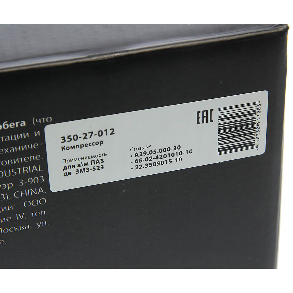| Наименование | Компрессор ПАЗ дв.ЗМЗ-523 (1-цилиндровый) возд. охлаж. без шкива 135л/мин. MEGAP |