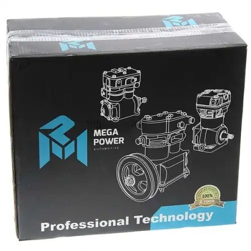 350-27-019 MEGA POWER Компрессор МАЗ,ПАЗ дв.ЯМЗ-534 (1 цил.) жид. охлаж. без шкива 270л/мин. (-17) MEG