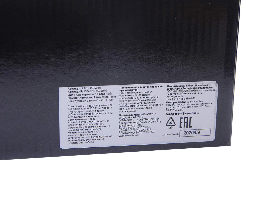 | Наименование | Цилиндр тормозной главный УРАЛ MEGAPOWER |