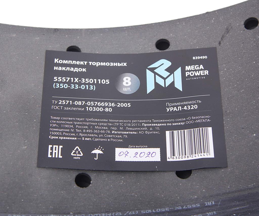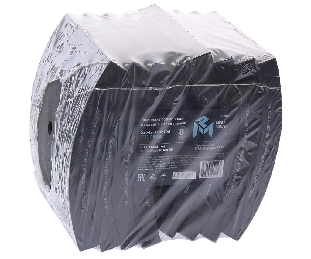 35033002 MEGA POWER Накладка тормозной колодки ПАЗ-4230,КАВЗ-4232 сверленая расточен. компл. 8шт. с