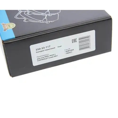 350-33-117 MEGA POWER Колодки тормозные OPEL Astra J CHEVROLET Cruze (09-) задние (4шт.) MEGAPOWER