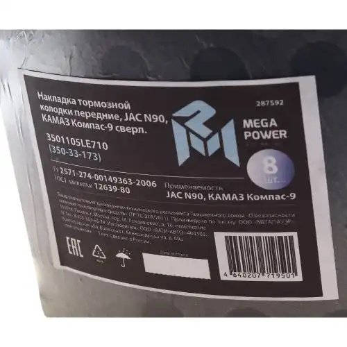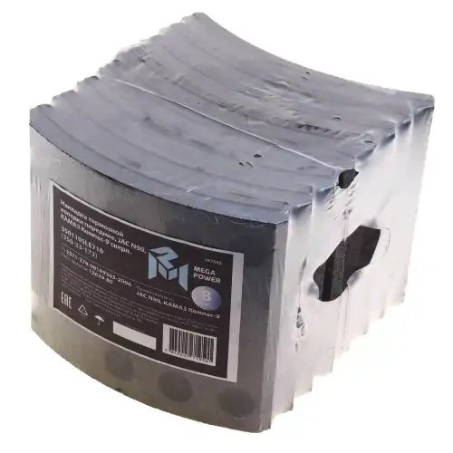 35033173 MEGA POWER Накладка тормозной колодки JAC N90 КАМАЗ Компас-9 передние сверл.к-т 8шт.с закле