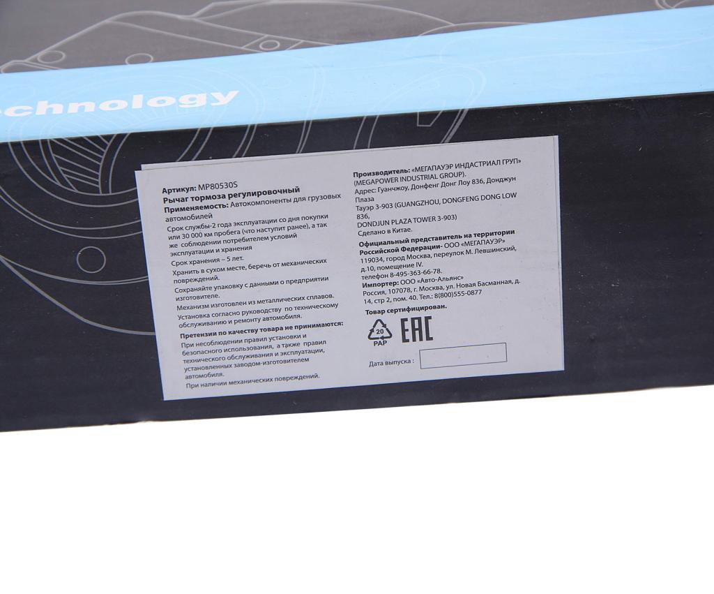 | Наименование | Рычаг тормоза регулировочный BPW автоматический (d=38мм, 10 шлиц.) MEGAPOWER |