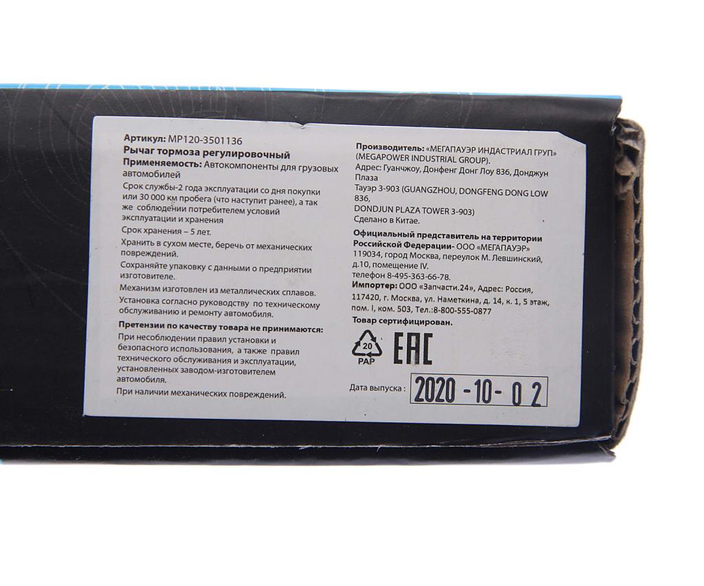 | Наименование | Рычаг тормоза регулировочный ЗИЛ,Т-150 передний MEGAPOWER |