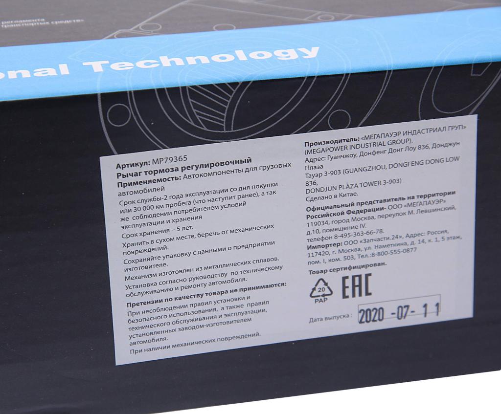 | Наименование | Рычаг тормоза регулировочный КАМАЗ-6520 средний левый MEGAPOWER |